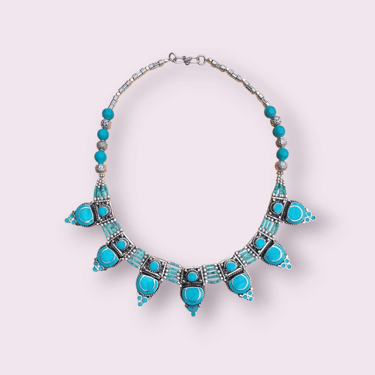 Statement turquoise necklace- Turquoise beaded necklace- Statement necklace- Bohemian turquoise jewelry- Nepali turquoise necklace-