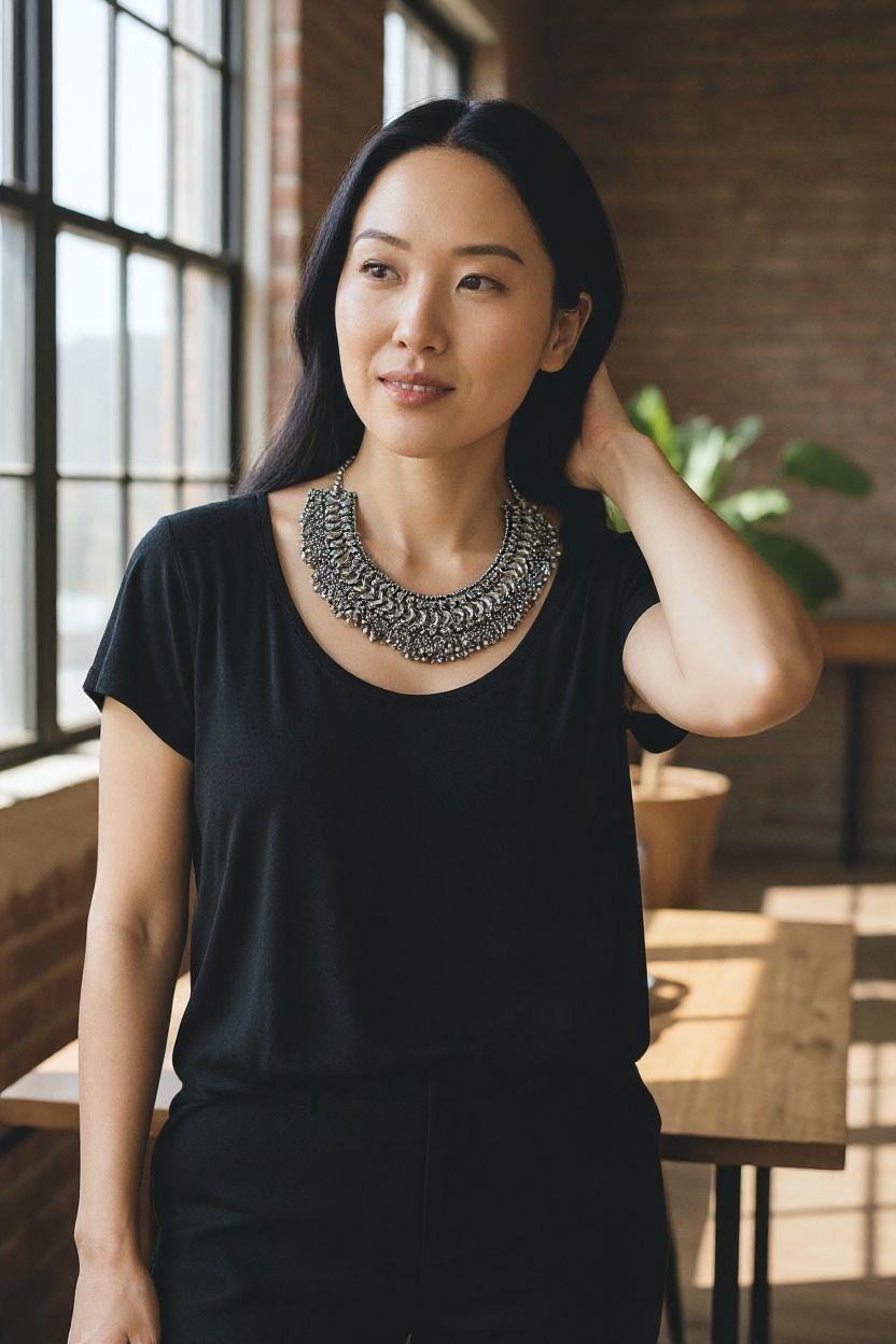 Listing a Fabulous one of a kind vintage tribal long tiered chain pendant necklace.