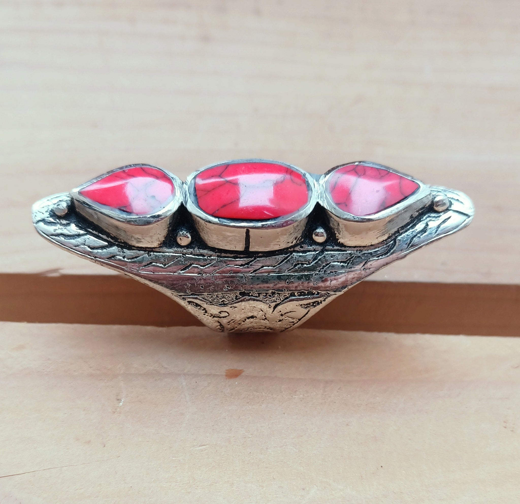 Coral stone ring- Afghan jewelry- Saddle ring. Coral statement ring.Ethnic Stone rings. Bohemian Afghan ring. Gypsy Nomadic Ring- boho ring