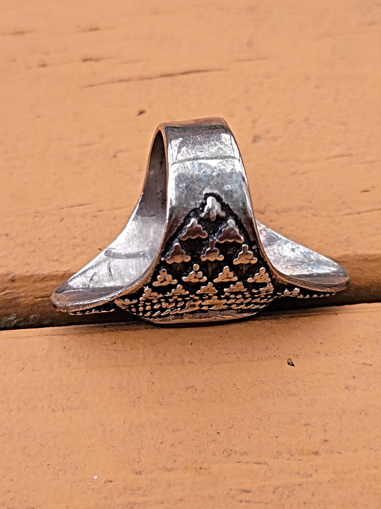 The ring has some real silver wire work going on in the construction.If I take age, handwork, silver content, rarity and other such qualities into consideration I would say these rings should be worth a lot more money.They have a solid silver base(that slightly shows sings of age) with very intricate silver wire work. that depicts geometric and floral motifs.