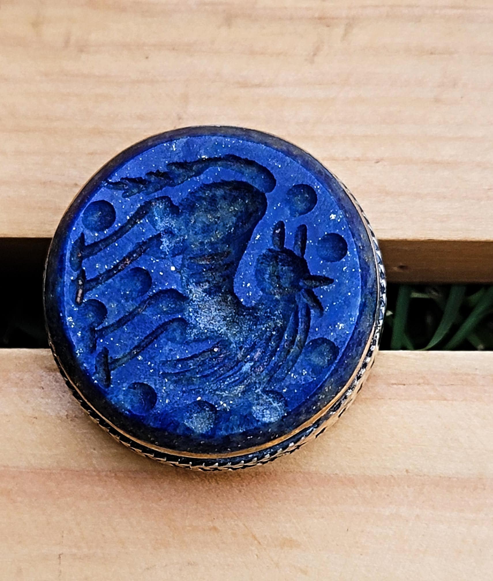 One of a kind Blue lapis Signet ring- deer Seal ring