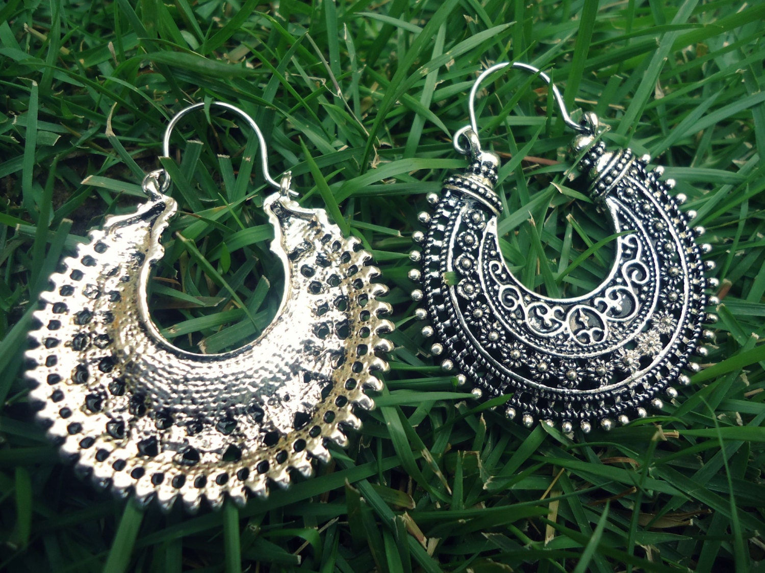 These very ethnic ornate Hoop Earrings were handcrafted by Tribal Jewelry artisans. They are made of local metals combined with silver along the lines of classic tribal Yemeni styling. Yemeni artisans were among the first jewelry makers recorded in the archaeological record from this region. The influence of their timeless designs and techniques can be seen in the various jewelry traditions throughout Central Asia, even today.Well made with delicacy yet light weight to keep balance on ear. These are exquisite and wearable.