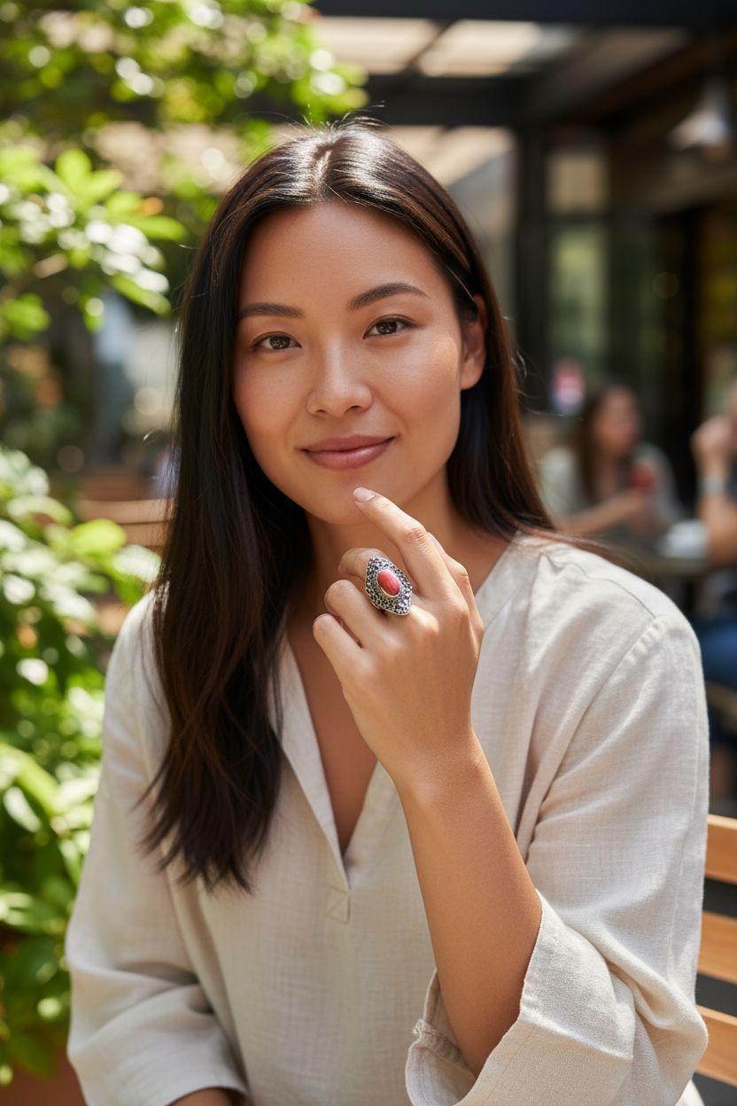 Coral Ring- Kuchi Ring- Afghan jewelry-  Saddle ring. Coral statement ring. Stone rings. Bohemian Afghan ring. Gypsy Nomadic Ring- boho ring