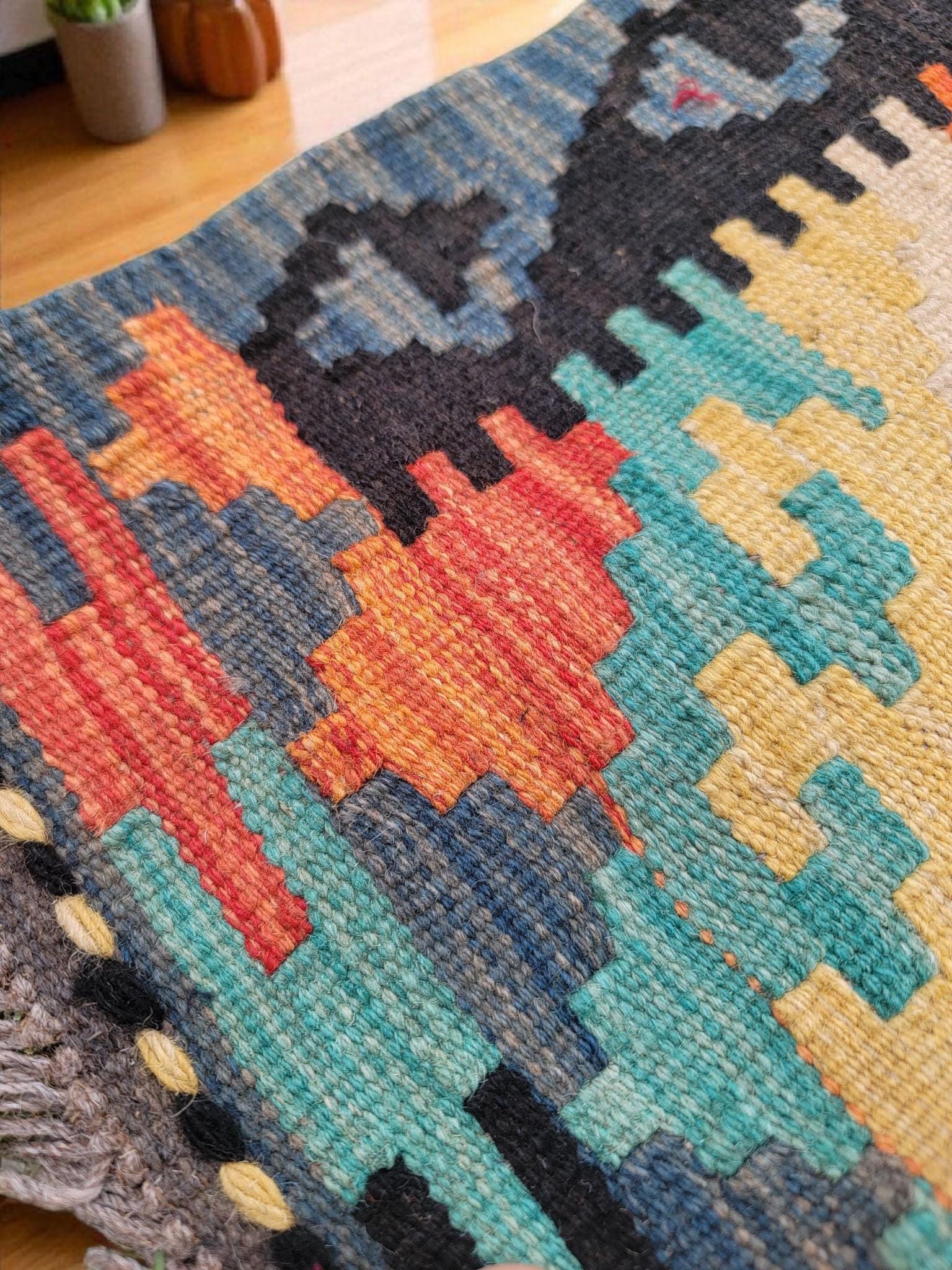 Geometric Turkish Wool Rug – Bohemian Home Decor, 4x2.5 ft