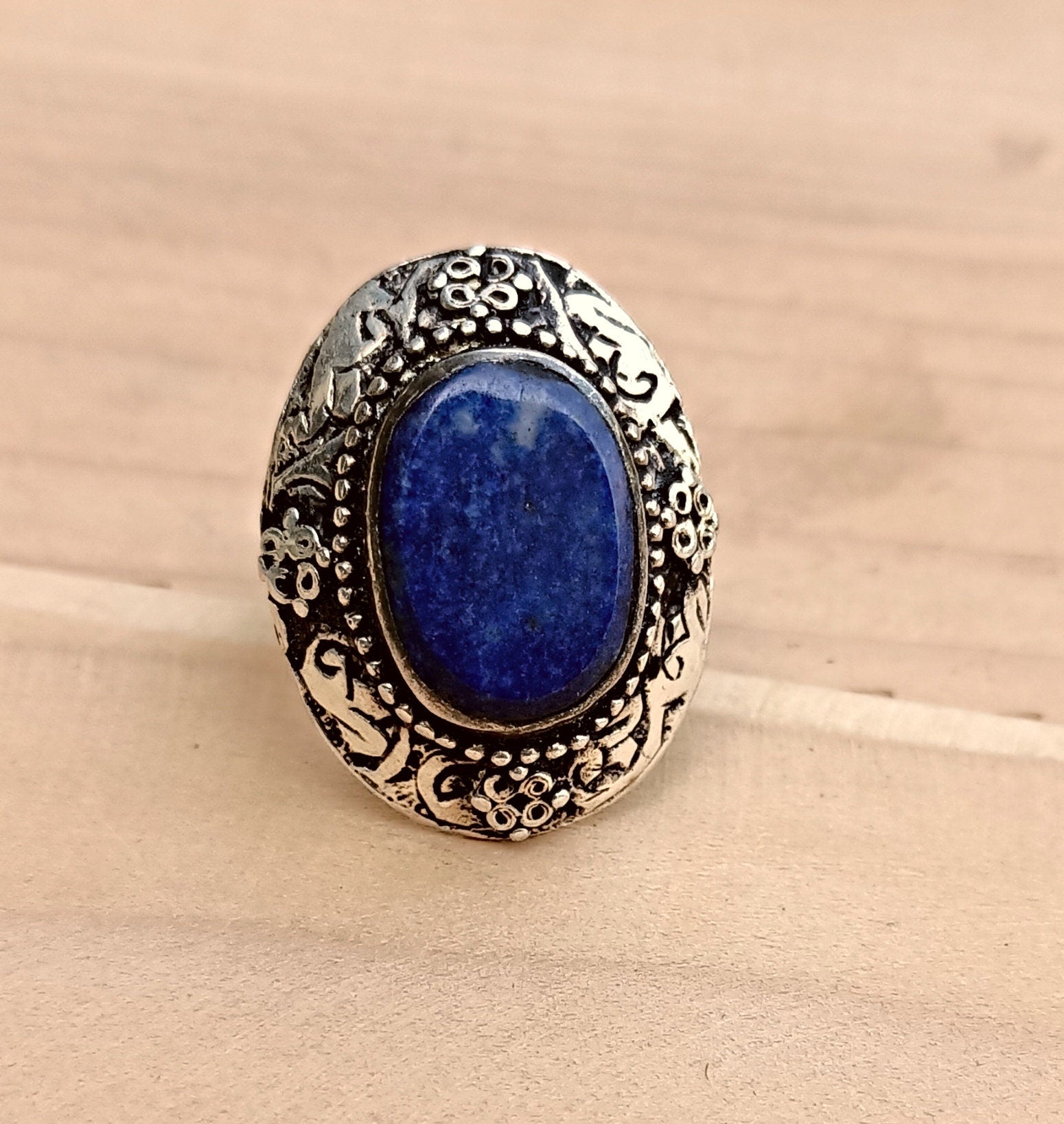 Lapis ring- Afghan lapis ring- Drop shaped Afghan Lapis Kuchi Ring.Handcarved Turkmen ring. Gypsy Boho Ring.Afghan Turkmen ethnic jewelry