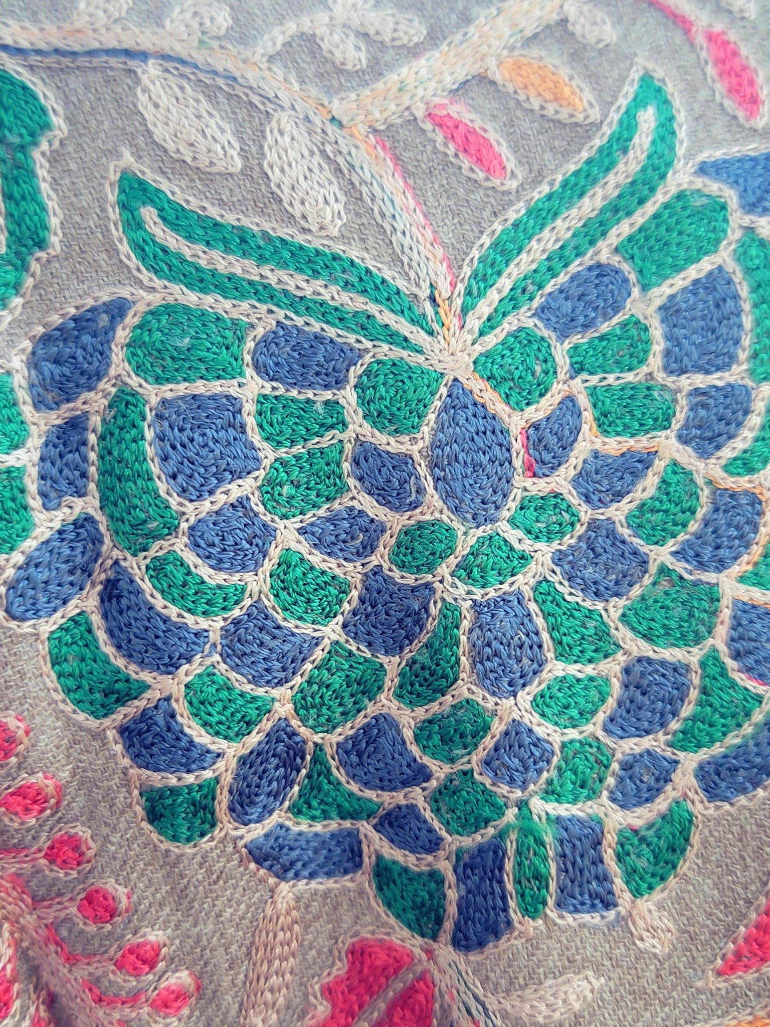 The colors in the embroidery are remarkable and the use of so may different colors is rare in such pieces.