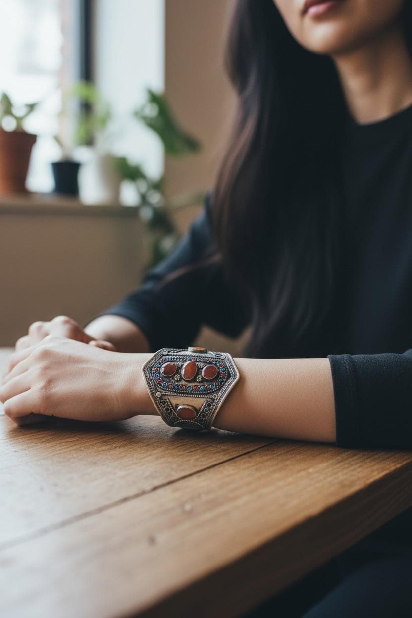 Afghan odouble stone aqeeq bracelet- Geometric bracelet- Rustic bracelet- Kuchi aqeeq jewelry- Cuff bracelet